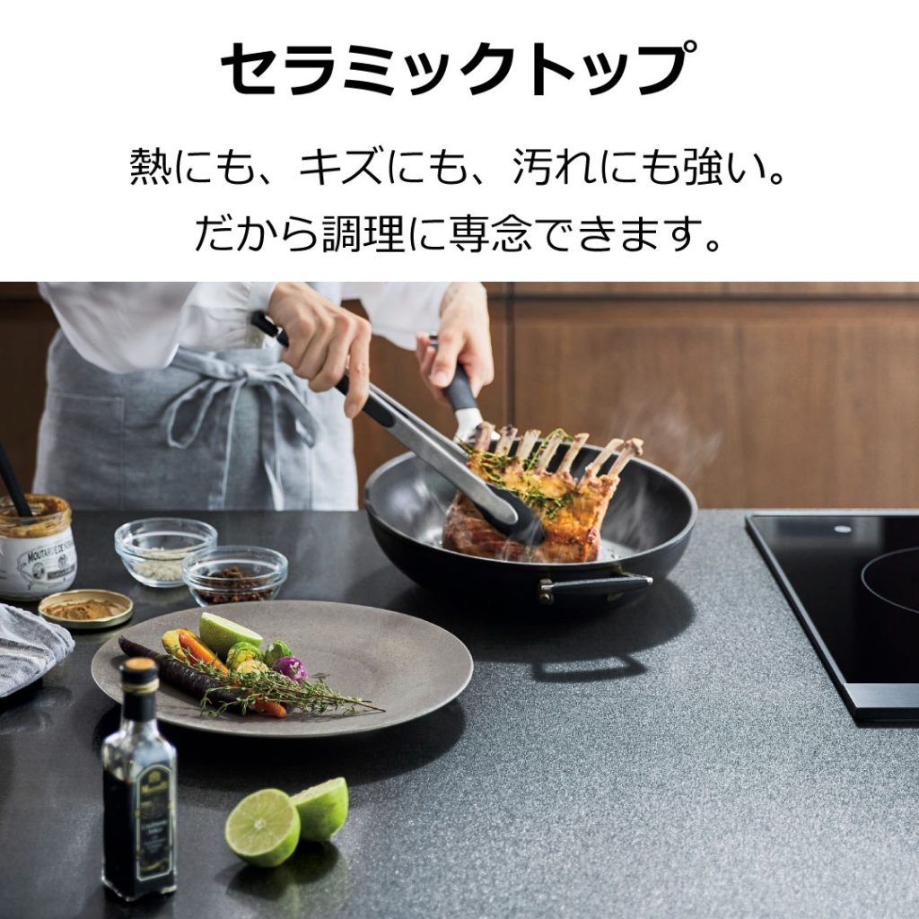 高温の鍋を直接置いても変色せず、キズや汚れにも強い高耐久素材です。