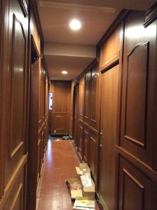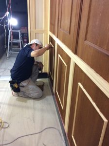 店舗什器・家具・内装木部に対する**OS塗装(オイルステイン仕上げ)**を多数施工しております。