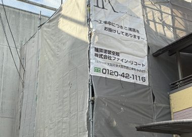 東大阪市にて、外壁塗装・屋根塗装工事が新たに着工しました。本日は「仮設足場の設置」と「高圧洗浄」についてご紹介いたします。今回の施工は、築20年以上経過した戸建