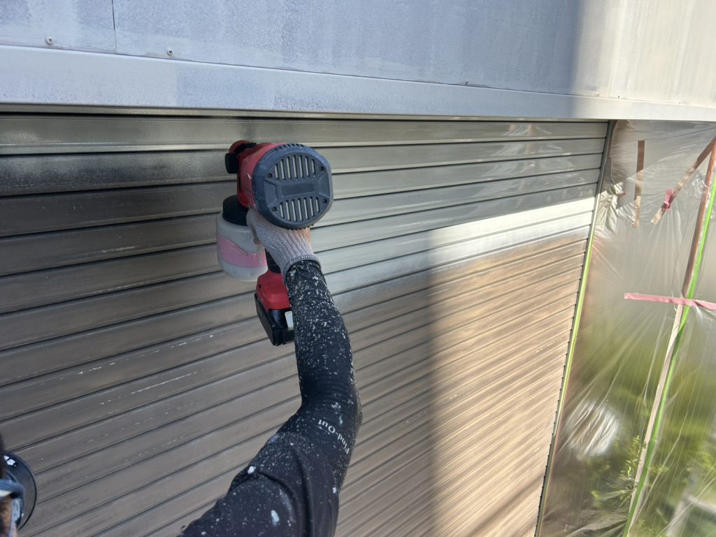 今回は、グラコの「ウルトラクイックショット」を使用して、シャッターの中・上塗りを行いました。