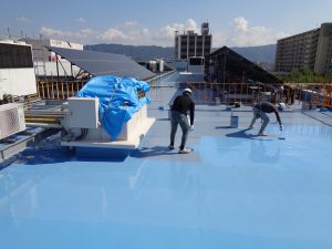 加えて、改修工事にも適しており、既存の防水層を撤去せずに施工できるケースが多いため、工期短縮やコスト削減にもつながります。騒音や粉塵の発生も少なく、居住者への影響を最小限に抑えられる点も魅力です。