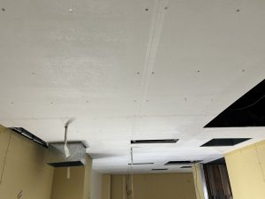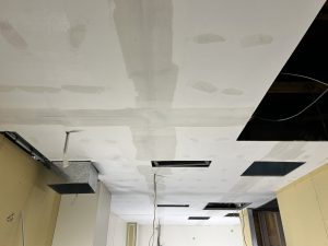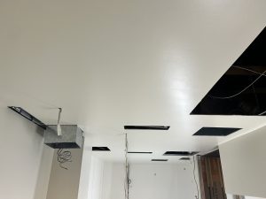 西宮市にて、新設厨房のケイ酸カルシウム板(ケイカル板)天井塗装を施工させていただきました。
