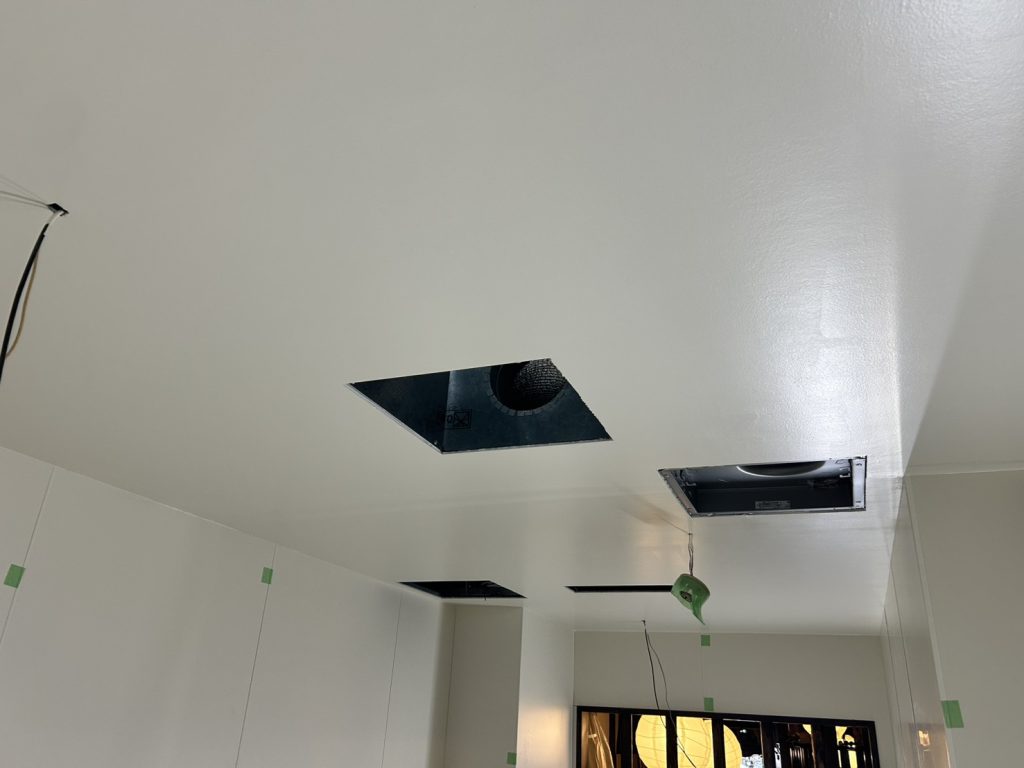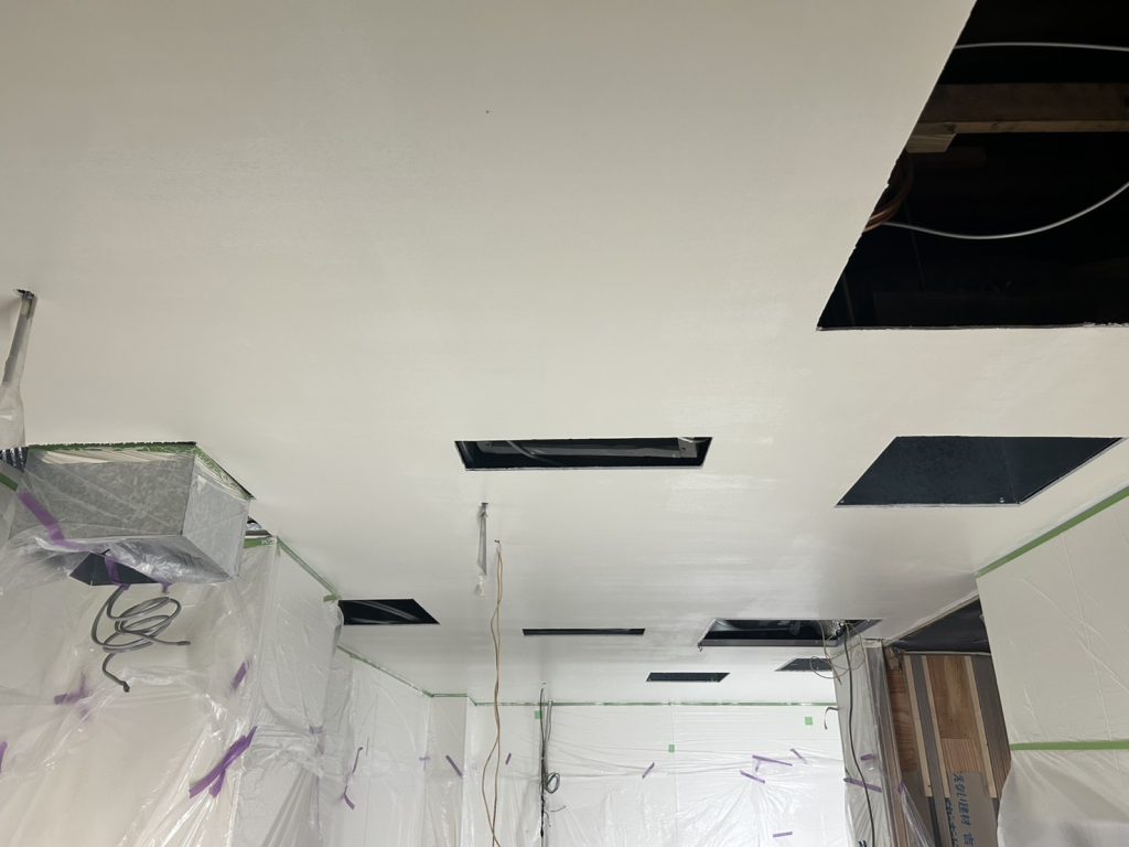 西宮市にて、新設厨房のケイ酸カルシウム板(ケイカル板)天井塗装を施工させていただきました。