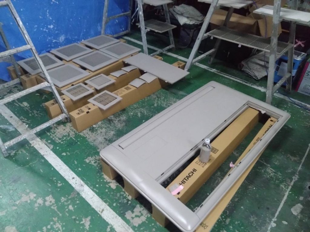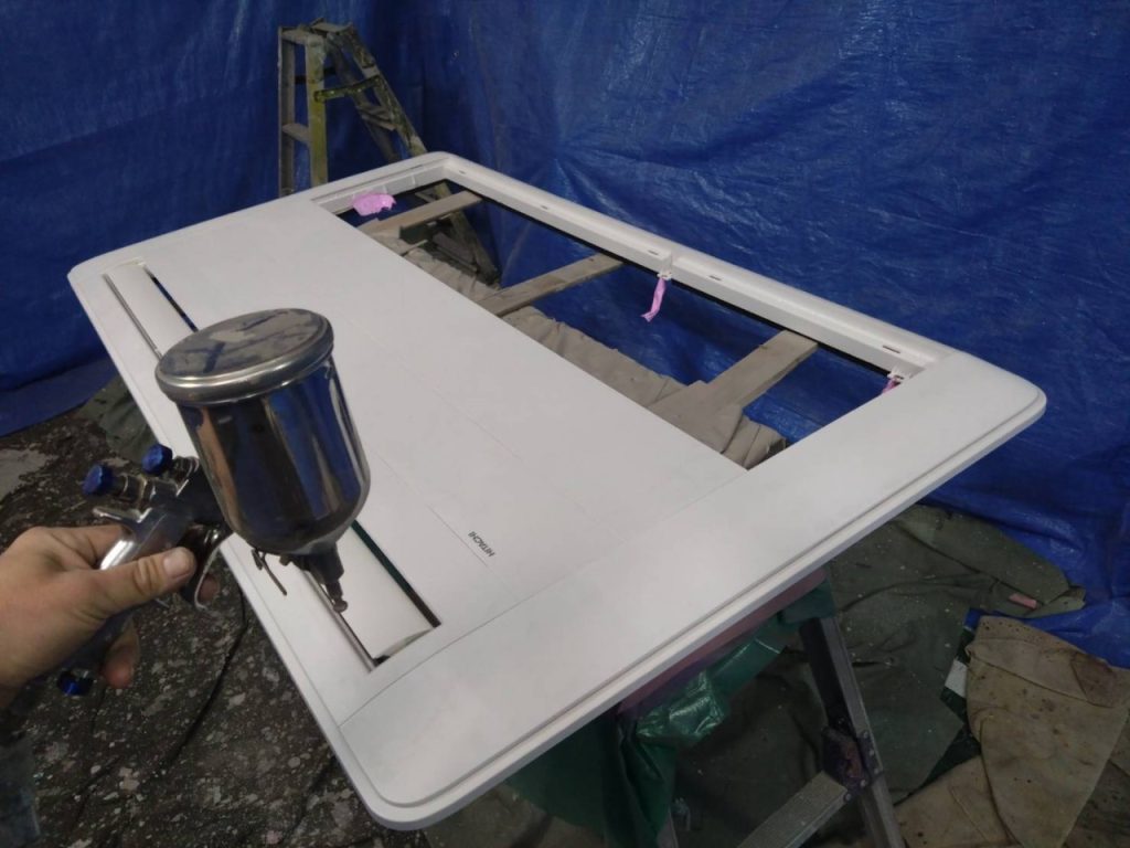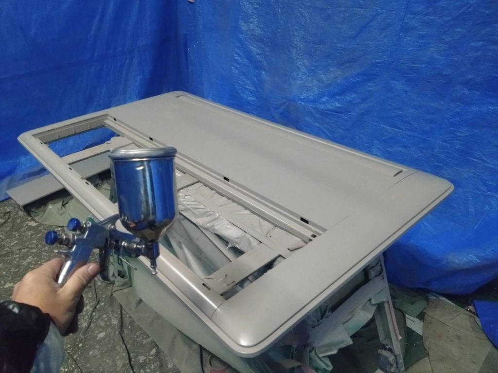 空調器具部材( エアコン化粧パネル)の吹付塗装を行いました。(その他部材含む)
