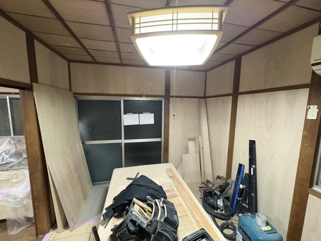 まず、既存の壁面の状態を確認したうえで、木下地の補強を行い、厚みのあるベニヤ板を丁寧に増し張りしていきます。砂壁を撤去せずに施工することで、工期を短縮し、廃材処分費用を抑えることができるのがこの工法のメリットです。ベニヤ張りの際には、段差や反りが出ないよう慎重に固定し、仕上がりの平滑性を確保しました。