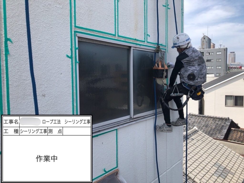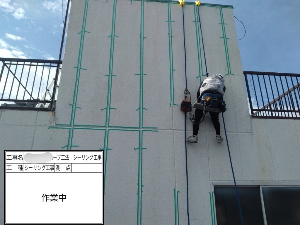 こんにちは!今回は、ロープアクセス工法を用いたシーリング工事の様子をご紹介します。