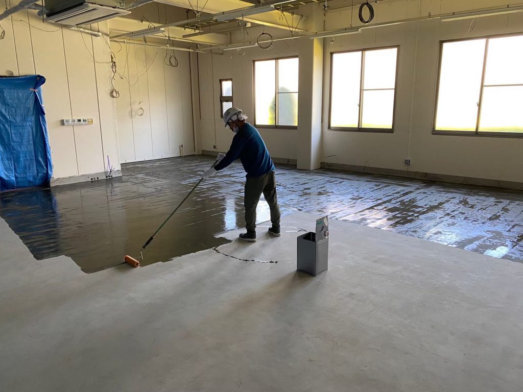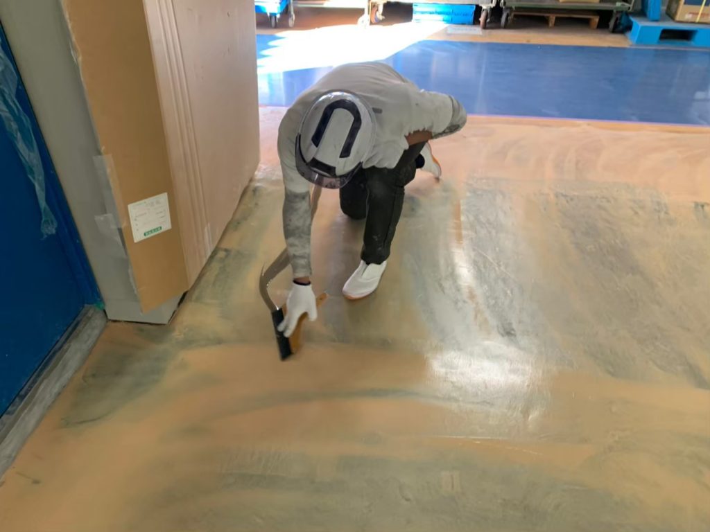 - プライマー塗布(必要に応じて) 下地との密着を強化するため、エポキシ系プライマーを塗布。