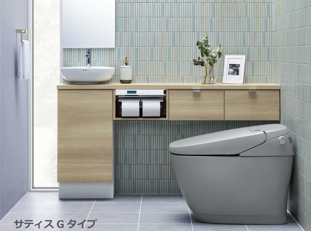 LIXILの「サティスGタイプ」は、トイレ空間を上質なインテリアとして演出することを目的に開発された、プレミアムクラスのタンクレストイレです。デザイン・快適性・清掃性のすべてを高い次元で融合しており、“トイレをくつろぎの空間へ”というLIXILの理念を体現するモデルです。